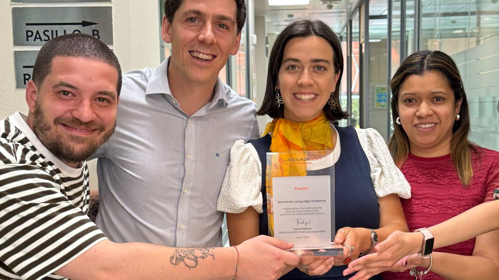 El pasado 6 de marzo tuvo lugar en Málaga el encuentro anual de LanguageCert para España y Portugal, una cita clave dentro del sector educativo. En este evento, American Language Academy fue galardonada con el premio nacional a la Pasión, en reconocimiento a su labor en el desarrollo, promoción y gestión de los exámenes LanguageCert tanto en modalidad presencial como online.