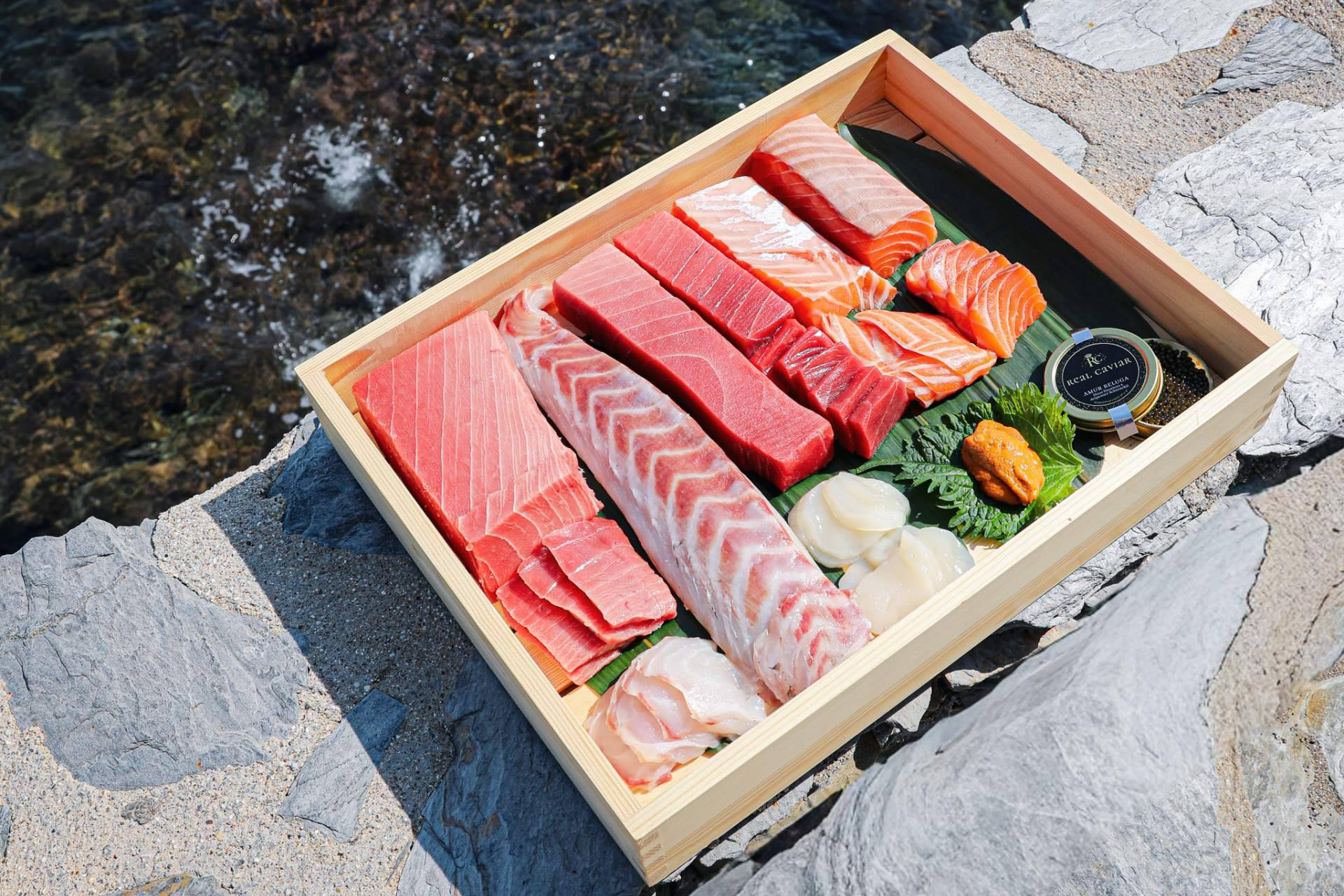 La carta actual permite entender con claridad el marco gastronómico de Kampai. En la parte de barra, la propuesta reúne opciones como hosomaki de salmón, negi toro maki, uramaki de anguila con aguacate, salsa caliente de anguila e ikura, además de handroll de salmón con tobiko y mayonesa yuzu, handroll de atún con erizo y shiso y handroll de wagyu con caviar. A ello se suma una selección de nigiris y sashimis con piezas como salmón, hamachi, lubina, akami, chutoro, otoro, vieira, erizo, amaebi, gamba y wagyu A5, junto a formatos como el sashimi moriawase de tres y cinco variedades.