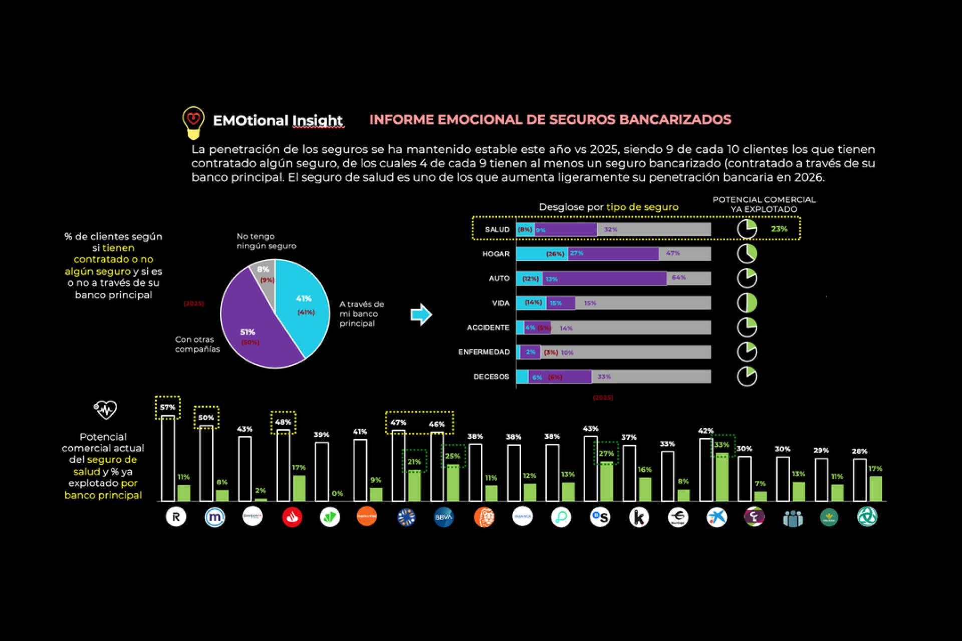 El Estudio General incluye además un zoom específico sobre neobancos y un Informe Emocional de los Seguros Bancarizados, dos ámbitos que están redefiniendo la competitividad del sector.